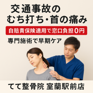 【交通事故施術なら てて整骨院 室蘭駅前店】むち打ち・首の痛み・腰痛に専門対応|室蘭駅すぐ・自賠責保険適用